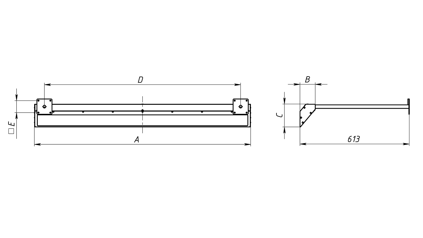 Крепление к поверхности стены на кронштейны (2 шт. на светильник). Кронштейны заказываются отдельно.