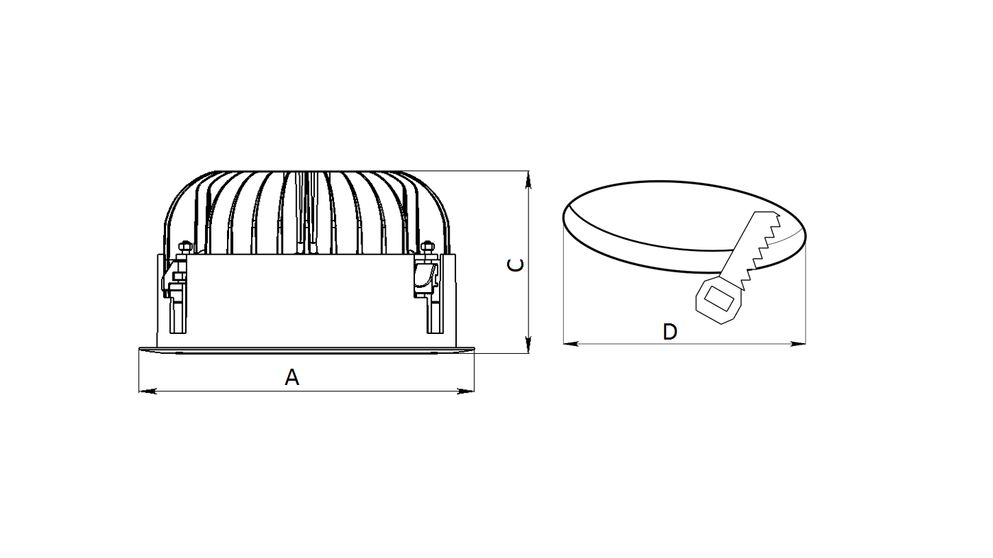 Встраиваются в подвесные потолки типа Армстронг, в подшивные потолки из гипсокартона или в потолки Грильято с установкой на трос.