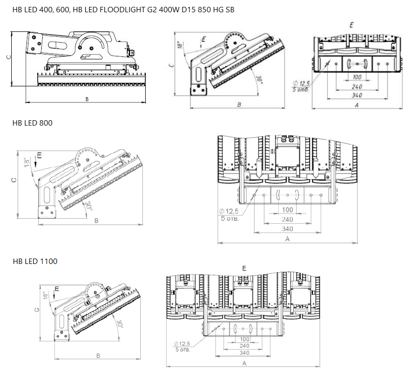 Модификации серии HB LED FLOODLIGHT G2