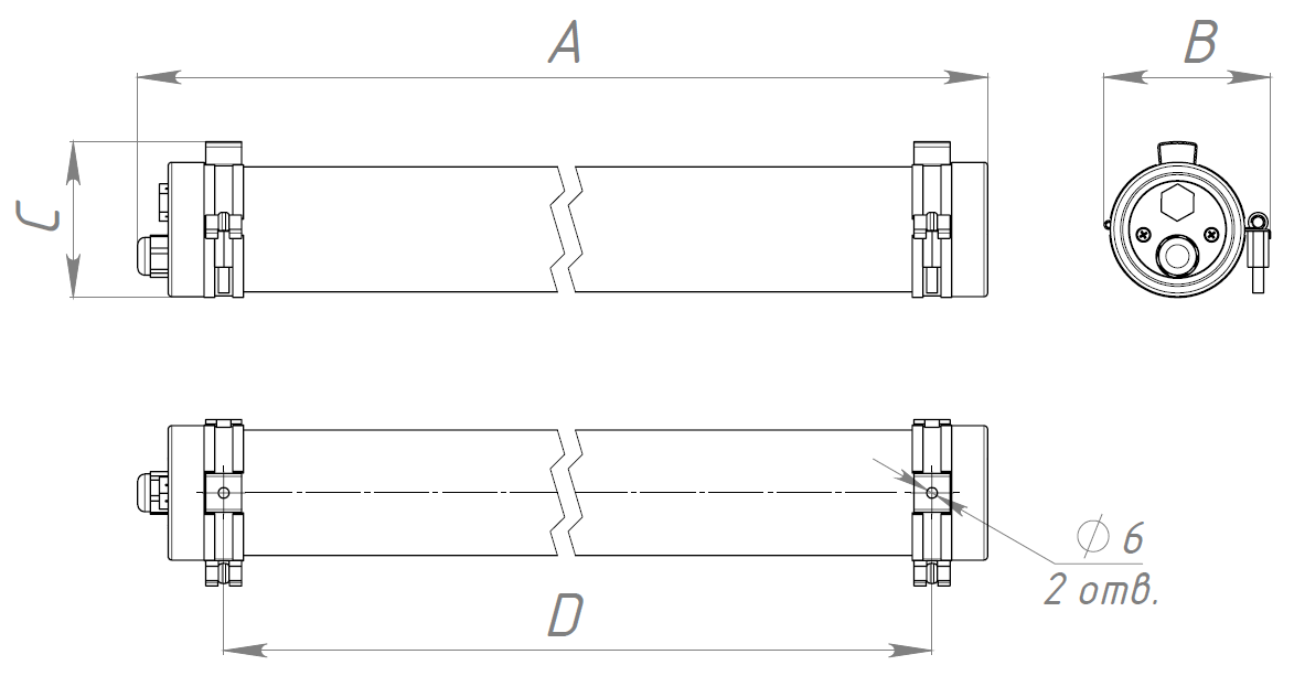 Крепление на поверхность потолка или стен c помощью скоб. Возможен подвес на трос.