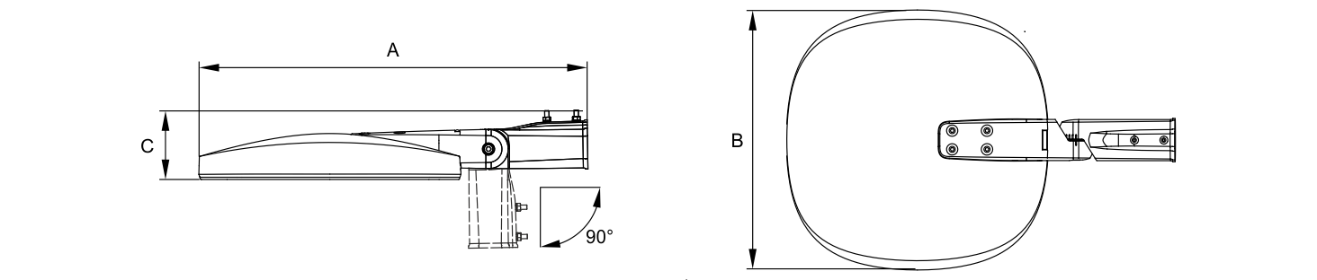 Светильник устанавливается на консольный или торшерный кронштейн диаметром 48÷60 мм (шаг регулирования - 5°).