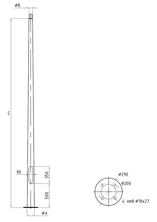 Опора устанавливается на закладную деталь фундамента (ЗДФ) посредством фланцевого соединения. Устройство фундамента выполняется согласно проектной документации, с учетом геологии грунта и климатических особенностей региона установки.