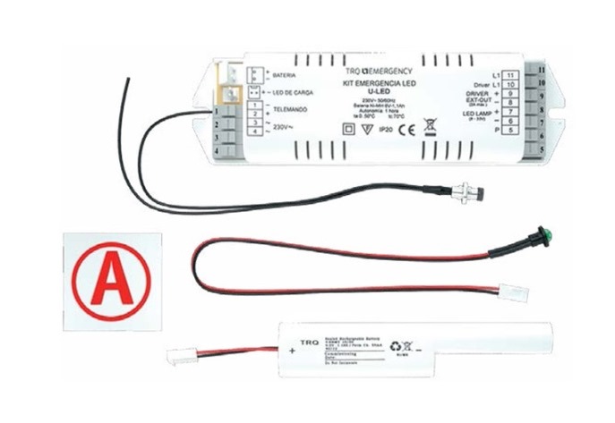 Комплект поставки состоит из блока аварийного питания с зелёным светодиодным индикатором заряда, аккумулятора, кнопки TEST для проверки работы светильника в аварийном режиме, наклейки А (для идентификации продукции аварийного освещения). Для некоторых модификаций в комплект поставки входит светодиодная линейка для аварийного освещения.