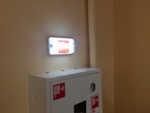 Освещение и сообщение необходимой информации (направление выхода, выход, направление на лестницу и т.д.) в случае прекращения подачи электроэнергии - в любых общественных, административных и жилых помещениях.