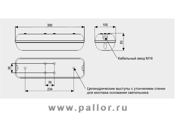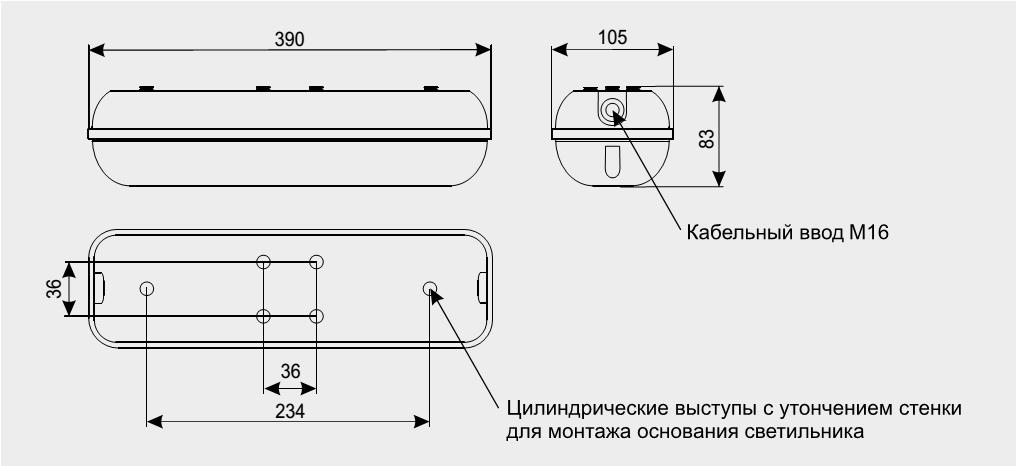 Оптическая часть - рассеиватель из поликарбоната.