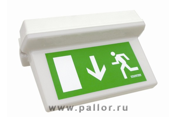 Оптическая часть - двусторонний опаловый рассеиватель из поликарбоната. В комплекте - лампы и наклейки с пиктограммами.