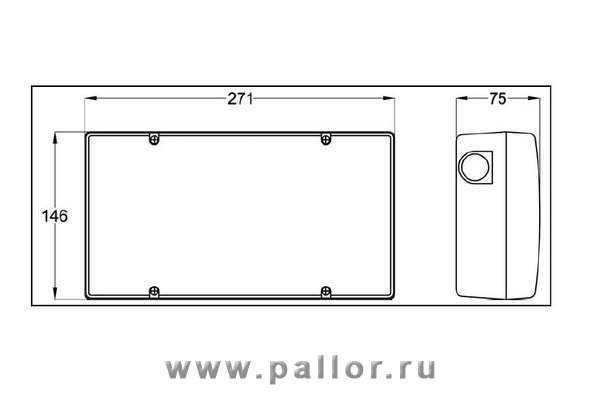 Популярная серия бюджетных светодиодных указателей пополнилась моделью с повышенной степенью защиты IP65. Низкая стоимость достигается минимизацией допфункций, например, у данного светильника нет возможности подключения устройства дистанционного тестирования TELEMANDO. Предназначен для установки на вертикальную поверхность стены, как указатель и на потолок, как аварийный светильник.