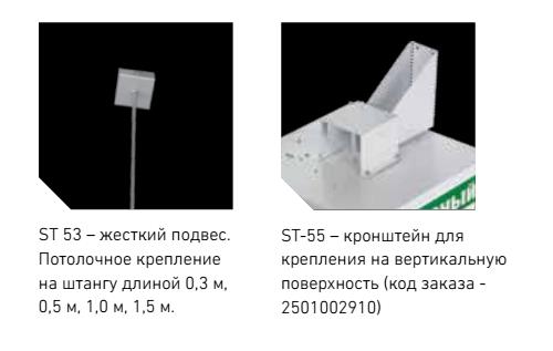 Светодиодный аварийный указатель с низкой степенью защиты IP40. Предназначен для установки непосредственно на поверхность потолка или на жесткий подвес ST-53 различной длины (заказываются отдельно). Также устанавливается на стену с помощью кронштейна ST-55.