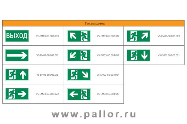 Обозначение и подсветка путей эвакуации. Пиктограммы в ассортименте (см.ниже).