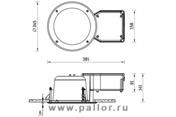 Анодированный алюминиевый отражатель. Защитное силикатное прозрачное стекло закреплено прижимным кольцом. В зависимости от заказа цвет прижимного кольца: серебристый, белый.