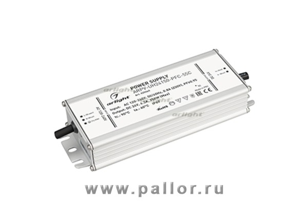 Описание Блок питания ARPV-UH24150-PFC-55C (24V, 6.3A, 150W) (Arlight, IP67 Металл, 5 лет)
