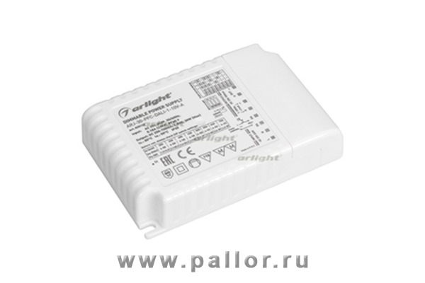 Описание Блок питания ARJ-30-PFC-DALI-1-10V-A (30W, 250-700mA) (Arlight, IP20 Пластик, 5 лет)