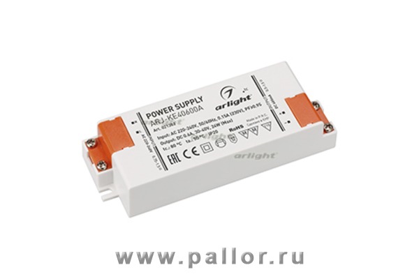 Описание Блок питания ARJ-KE40600A (24W, 600mA, PFC) (Arlight, IP20 Пластик, 5 лет)