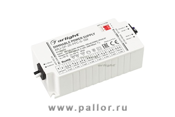 Описание Блок питания ARJ-SP-20-PFC-0-10V (20W, 350-700mA) (Arlight, IP20 Пластик, 5 лет)