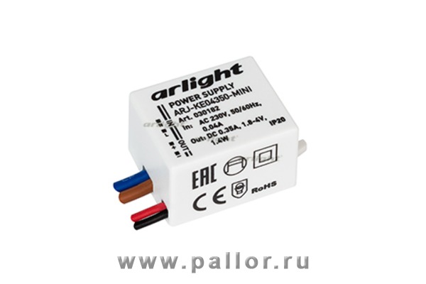 Описание Блок питания ARJ-KE04350-MINI (1.4W, 350mA) (Arlight, IP20 Пластик, 5 лет)