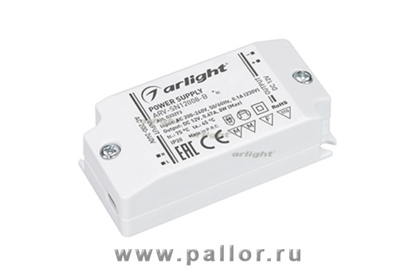 Описание Блок питания ARV-SN12008-B (12V, 0.67A, 8W) (Arlight, IP20 Пластик, 3 года)