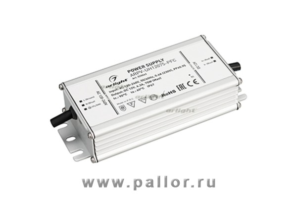 Описание Блок питания ARPV-UH12075-PFC (12V, 6.3A, 75W) (Arlight, IP67 Металл, 7 лет)