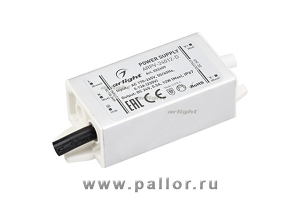 Описание Блок питания ARPV-24012-D (24V, 0.5A, 12W) (Arlight, IP67 Металл, 3 года)