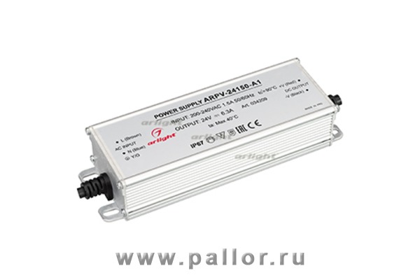 | Блок питания ARPV-24150-A (24V, 6.3A, 150W) (Arlight, IP67 Металл, 3 года) | 024091(1) | По запросу | шт. |