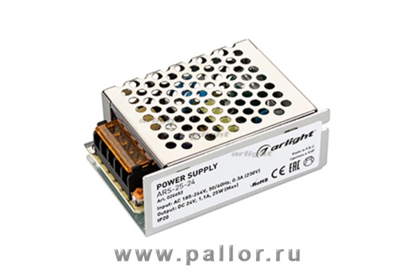 Описание Блок питания ARS-25-24 (24V, 1.1A, 25W) (Arlight, IP20 Сетка, 2 года)
