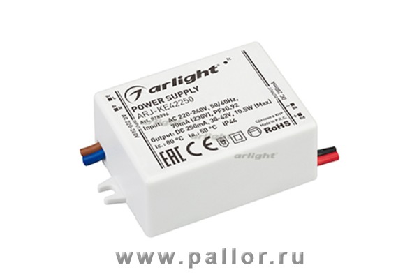 Описание Блок питания ARJ-KE42250 (11W, 250mA, PFC) (Arlight, IP44 Пластик, 5 лет)