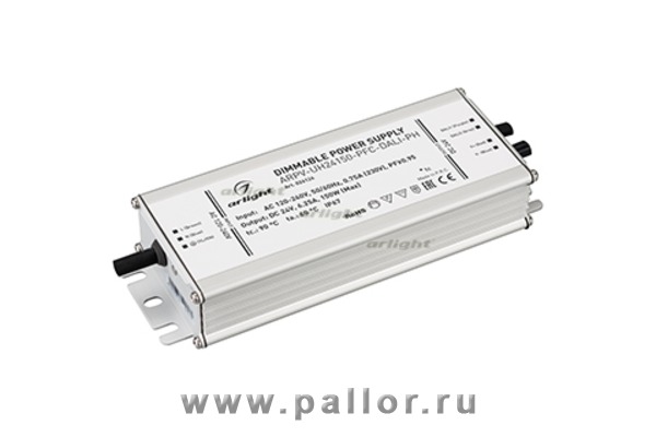 Описание Блок питания ARPV-UH24150-PFC-DALI-PH (24V, 6.3A, 150W) (Arlight, IP67 Металл, 7 лет)