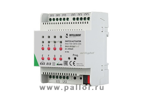 Описание INTELLIGENT ARLIGHT Релейный модуль KNX-708-SW10-DIN (BUS, 8x10A) (Arlight, -)