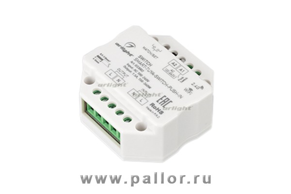 | Контроллер-выключатель SMART-TUYA-SWITCH-PUSH-IN (230V, 1.5A, WiFi, 2.4G) (Arlight, IP20 Пластик, 5 лет) | 33002 | 5 155 | шт. |