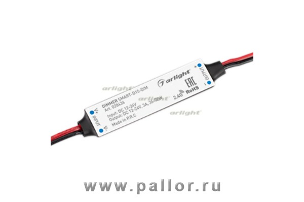 Описание Диммер SMART-D15-DIM (12-24V, 1x3A, 2.4G) (Arlight, IP20 Пластик, 5 лет)