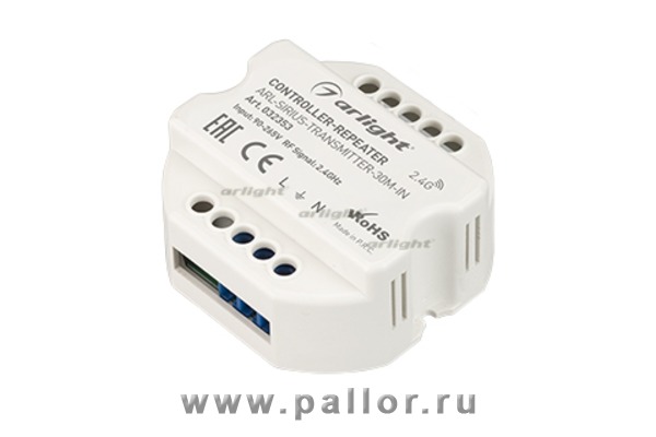 Описание Контроллер-усилитель ARL-SIRIUS-TRANSMITTER-30M-IN (230V, 2.4G) (Arlight, IP20 Пластик, 3 года)