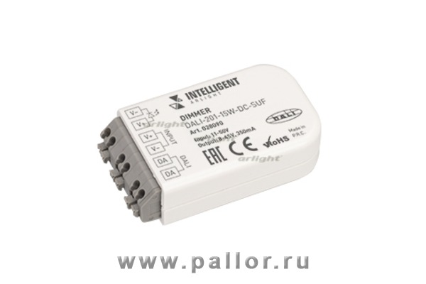 Описание INTELLIGENT ARLIGHT Диммер DALI-201-15W-DC-SUF (8-45V DC, 350mА) (INTELLIGENT ARLIGHT, IP20 Пластик, 3 года)