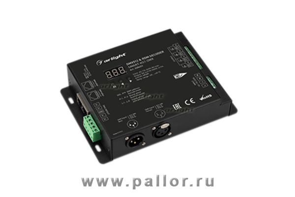 Описание Декодер SMART-K57-DMX (230V, 4x2A, XLR3) (Arlight, IP20 Металл, 5 лет)