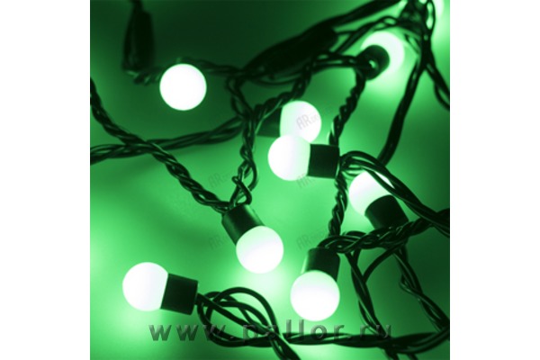 Описание Светодиодная гирлянда ARD-BALL-CLASSIC-D17.5-10000-BLACK-100LED GREEN (230V, 7W) (Ardecoled, IP65)