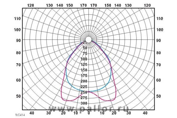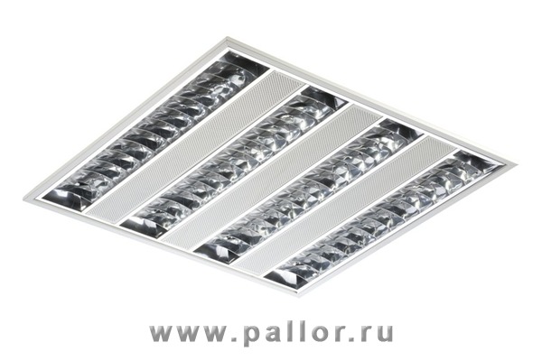 Оптическая система - зеркальный растровый отражатель имеет форму двойной параболы, изготовлен из алюминия, на который нанесен синтетический материал с зеркальным напылением по технологии PVD. Между отражателями растра - белые перфорированные вставки.