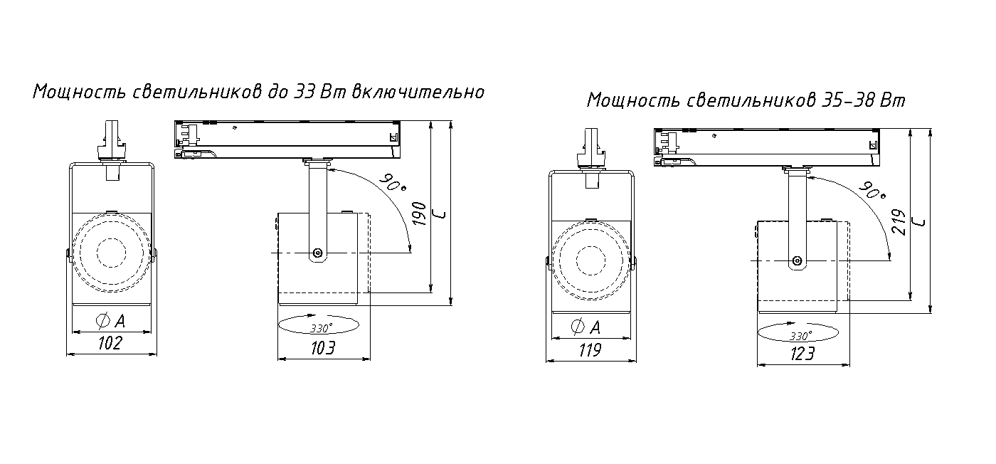 Светильник устанавливается на трехфазный шинопровод euro-DIN