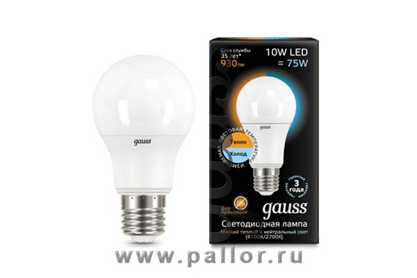 Описание Лампа Gauss LED A60 10W E27 880lm 3000K 1/10/50