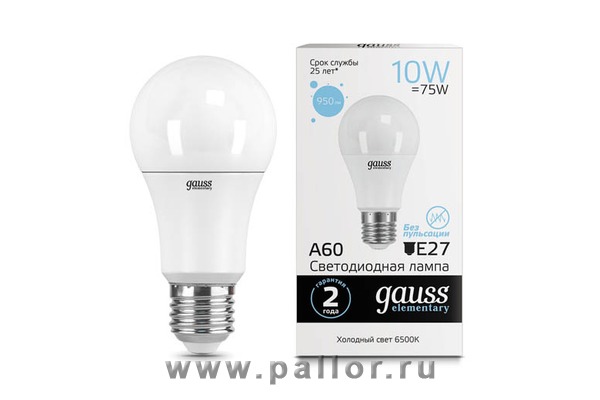Описание Лампа Gauss LED Elementary A60 10W E27 950lm 6500K 1/10/50