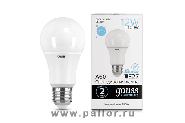 Описание Лампа Gauss LED Elementary A60 12W E27 1170lm 6500K 1/10/50