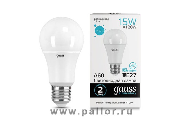 Описание Лампа Gauss LED Elementary A60 15W E27 1450lm 4100K 1/10/50