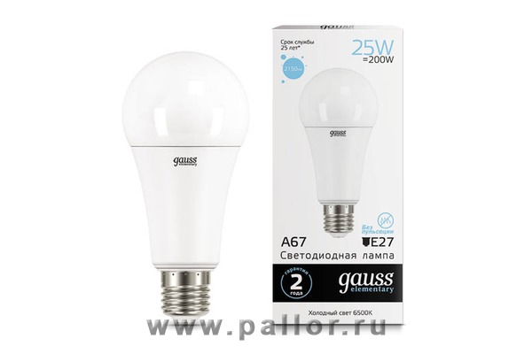 | Лампа Gauss LED Elementary A67 25W E27 2150lm 6500K 1/10/50 | 73235 | 25 | (E27) | По запросу |