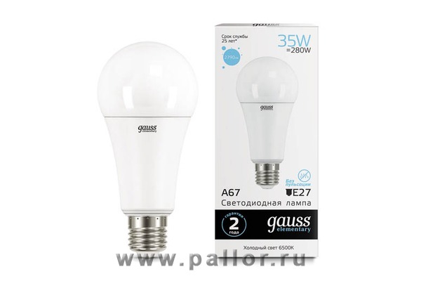 | Лампа Gauss LED Elementary A67 35W E27 2790lm 6500K 1/10/50 | 70235 | 35 | (E27) | По запросу |
