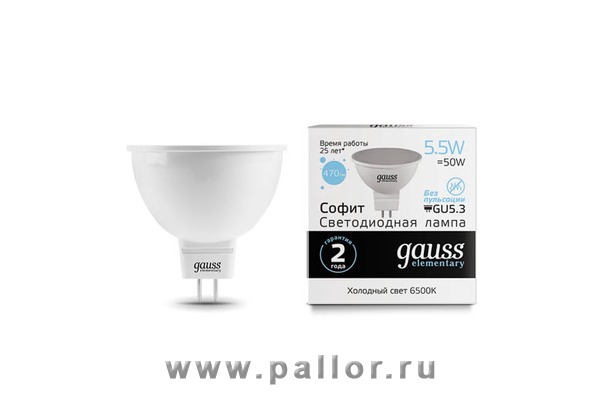 | Gauss LED Elementary MR16 GU5.3 5.5W 6500К | 13536 | 5.5 | (GU5.3) | 50х50 |