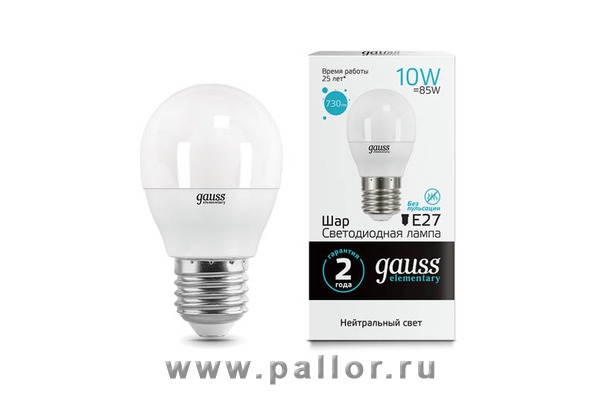 Описание Лампа Gauss LED Elementary Шар 10W E27 920lm 4100K 1/10/100