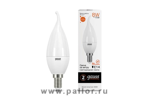 | Лампа Gauss LED Elementary Свеча на ветру 8W E14 520lm 3000K 1/10/50 | 34118 | 8 | (E14) | По запросу |