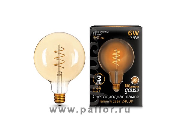 Описание Лампа Gauss LED Filament G120 Flexible E27 6W Golden 360lm 2400К 1/20