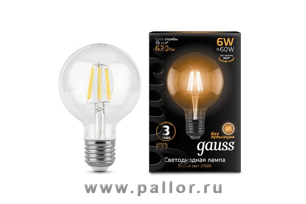 Описание Лампа Gauss LED Filament G95 E27 6W 630lm 2700K 1/20