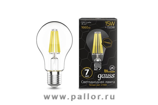 Описание Лампа Gauss LED Filament Graphene A60 E27 15W 1660lm 2700К 1/10/40