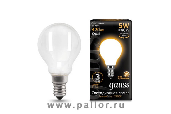Описание Лампа Gauss LED Filament Шар OPAL E14 5W 420lm 2700K 1/10/50