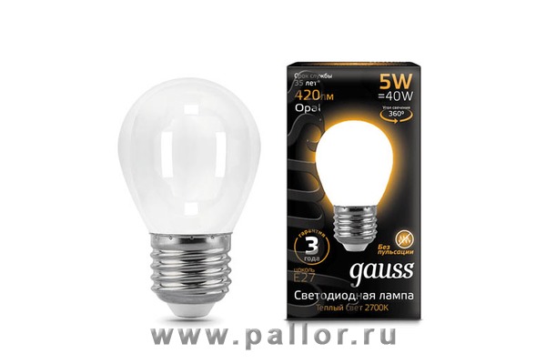 Описание Лампа Gauss LED Filament Шар OPAL E27 5W 420lm 2700K 1/10/50