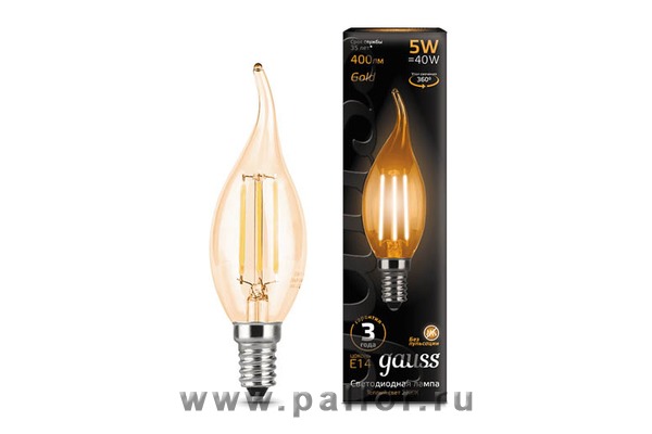 | Лампа Gauss LED Filament Свеча на ветру E14 5W 400lm 2700K Golden 1/10/50 | 104801005 | 5 | (E14) | По запросу |